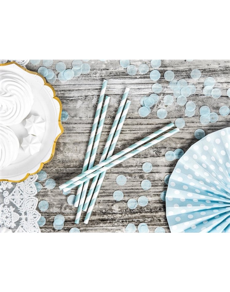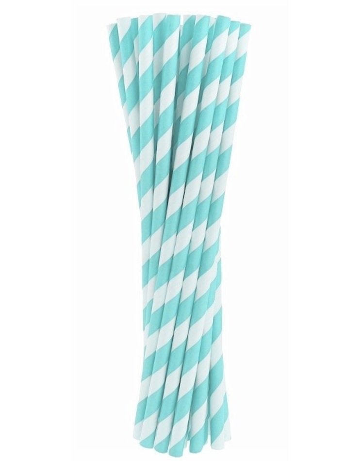 Magicoo 10 Trinkhalme aus Papier hellblau - gestreift (19,5 cm)