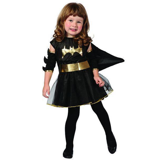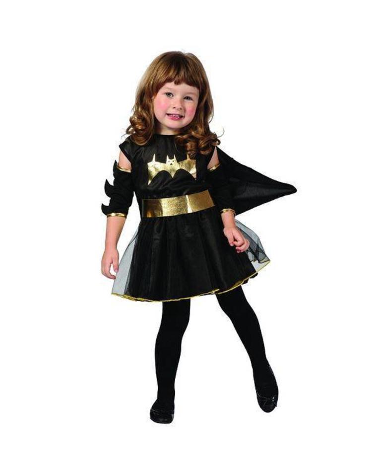 Batgirl ist eine der beliebtesten Helden-Figuren bei kleinen Mädchen. Deshalb ist dieses Kostüm auch so gefragt. Unser Batgirl Kostüm für Kleinkinder besteht aus einem schwarzen Kleid mit goldenem Gürtelband und schwarzem Umhang sowie coolen "Helden-Schützern" an den Ellenbogen, die mit Fledermaus-Zacken und Goldrand verziert sind. Der Clou ist aber natürlich die goldene Fledermaus auf der Brust. Ein Klasse-Kinderkostüm, das es nur in den Größen 92 bis 104 gibt!