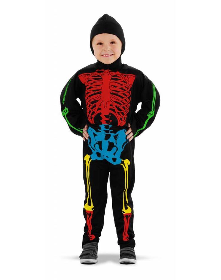 - Lieferumfang: Skelett Kostüm für Kinder inkl. Ganzkörperanzug mit Skelett-Print und Mütze in bunten Farben