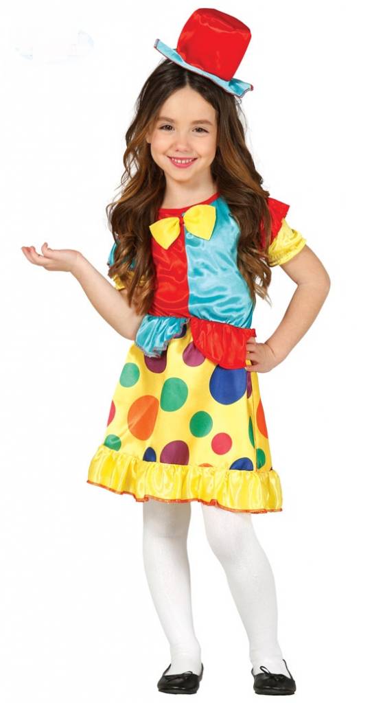 Lieferumfang: Clown Kostüm für Mädchen inkl. Kleid und Hut.