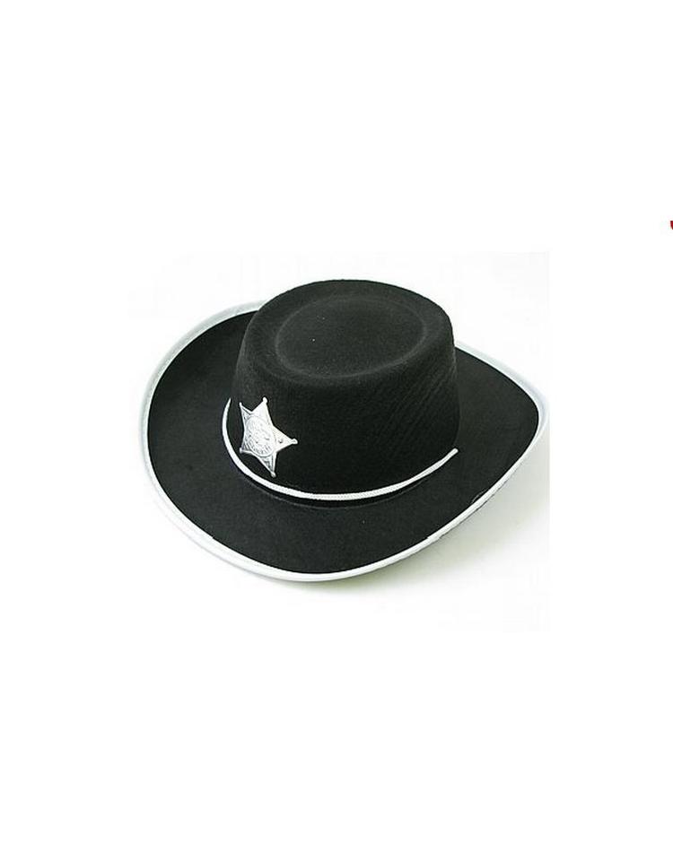 Wenn der Besitzer dieses schwarzen Cowboy Hutes für Kinder die Kostüm Party betritt, ist ihm sein Auftritt sicher. Der stabile Cowboy Hut wirkt insbesondere durch die weißen Applikationen in Lederoptik an der Krempe des Hutes und durch den silbern glänzenden Cowboystern. Auf in den Kampf kleiner Cowboy gegen die Bösewichte des Wilden Westens!