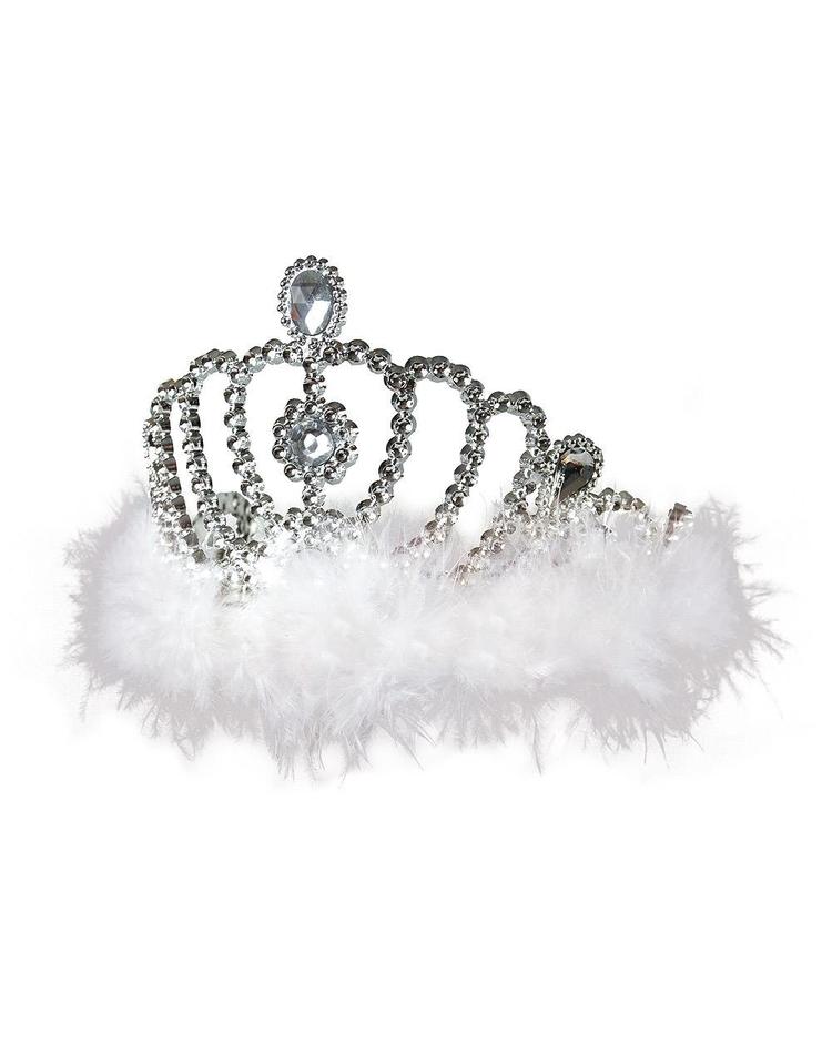Zu jedem Prinzessin-Kostüm gehört auch eine schöne Krone beziehungsweise ein schönes Diadem. Dieses Diadem in Silber-Weiß ist ein kleiner Traum, nicht nur, wenn man als Eisprinzessin unterwegs sein möchte. Der untere Ring wird mit weißen Kunstfedern geschmückt. Darüber sorgt das silberne, geschwungene Gestell - besetzt mit etlichen Kunstedelsteinen - für tolle glitzernde Eindrücke. Mit diesem Diadem machen Sie richtig etwas her.