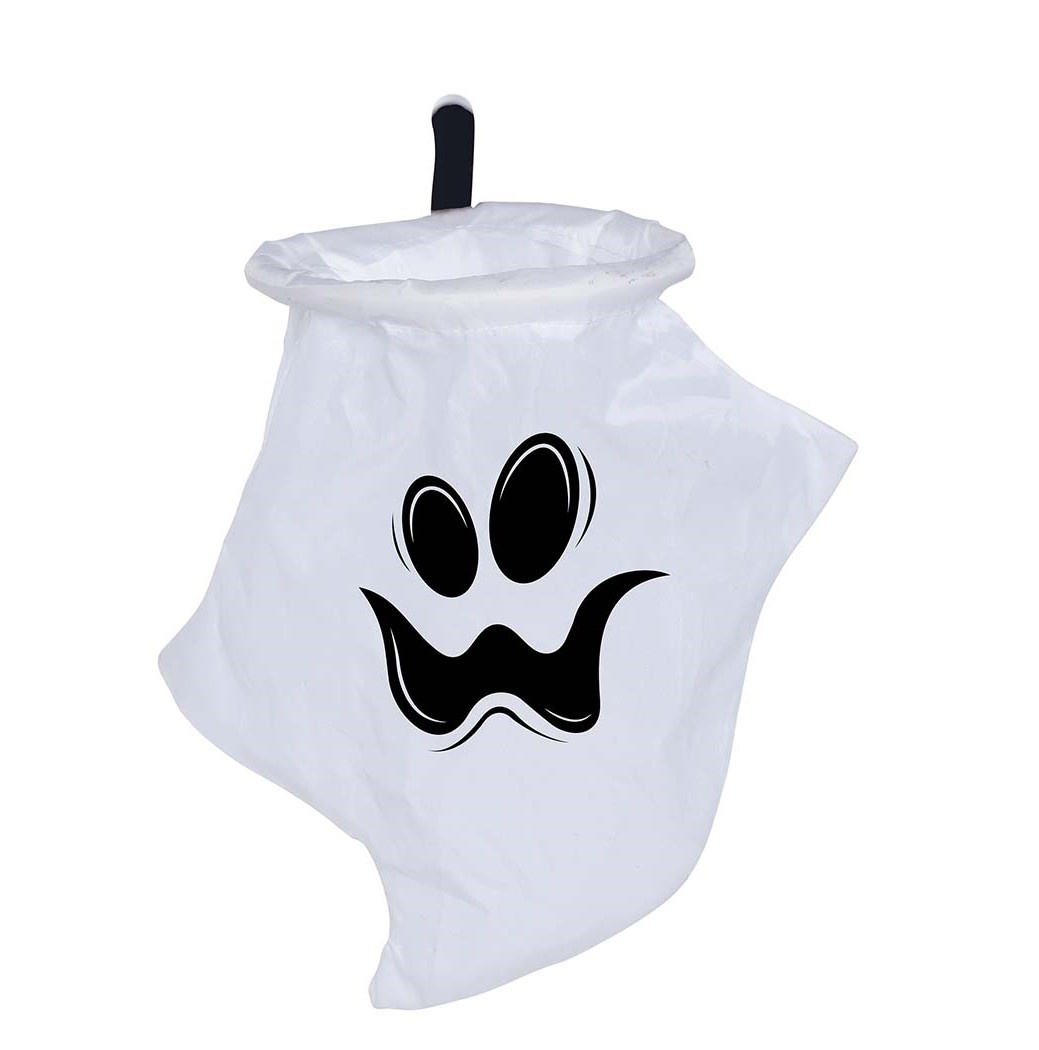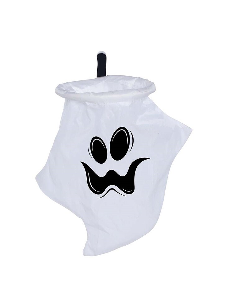 Diese ausgefallene Bonbontasche ist definitiv ein Hingucker. Der weiße Korb bedruckt mit Gespenstmotiv ist an einem Stiel befestigt. Die Tasche eignet sich perfekt zum Sammeln von Süßigkeiten und zum Verschenken kleiner Halloween-Überraschungen.