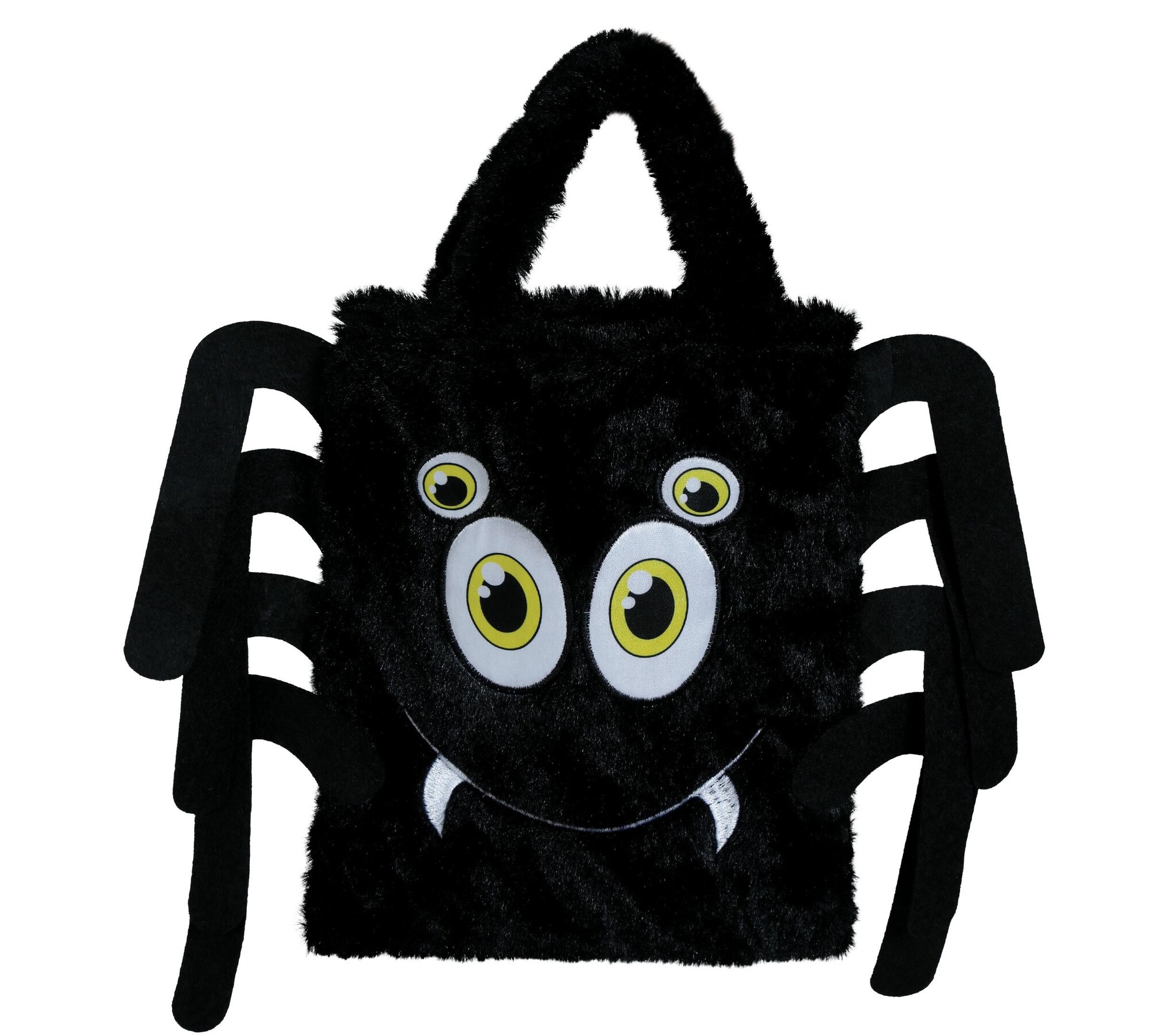 Diese flauschige Halloween-Tasche ist der süße Hingucker für die Gruselnacht! Der weiche, schwarze Plüschkorb (ca. 19 x 23 cm) hat die Form einer freundlichen, lustigen Spinne mit großen Augen und kleinen Eckzähnen. Sie ist perfekt zum Sammeln von Süßigkeiten beim "Trick-or-Treat" und ein lustiges Accessoire für jedes Kinderkostüm.