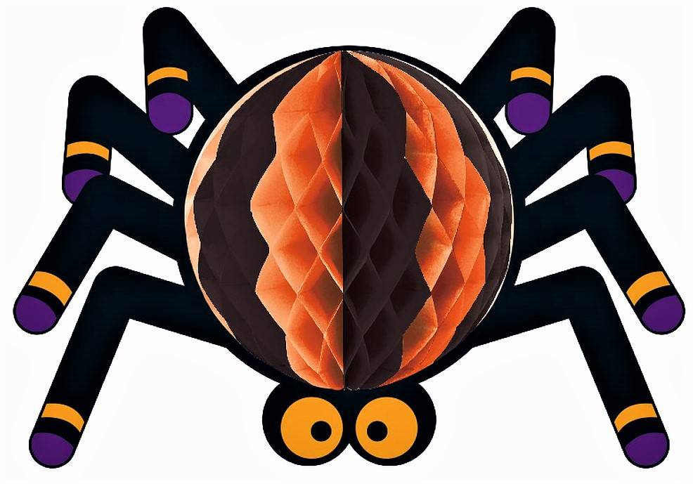 Die Wand- und Tischdekoration für Halloween umfasst einen Papierfächer in Spinnenform. Die ideale Ergänzung zu Luftballons, Pompons und Wabenbällen in ähnlichen Halloween-Farben.