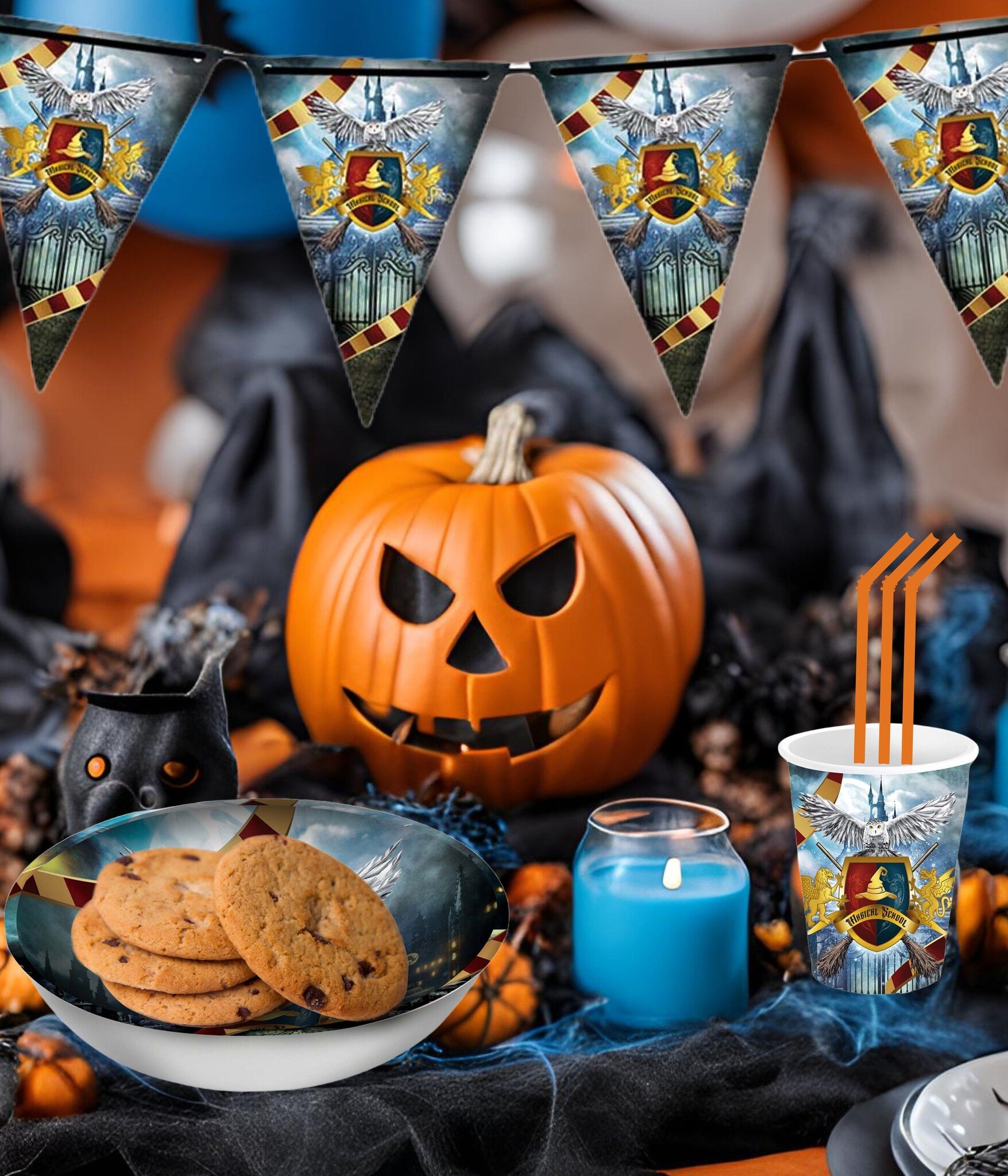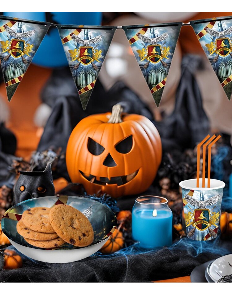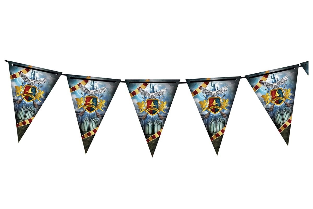 Unsere Wimpelgirlande für die Zauberer-Party bringt Kinderaugen zum Leuchten und ist perfekt für kleine Zauberer und Hexen, die ein bisschen Magie auf ihrem Partytisch erleben möchten.