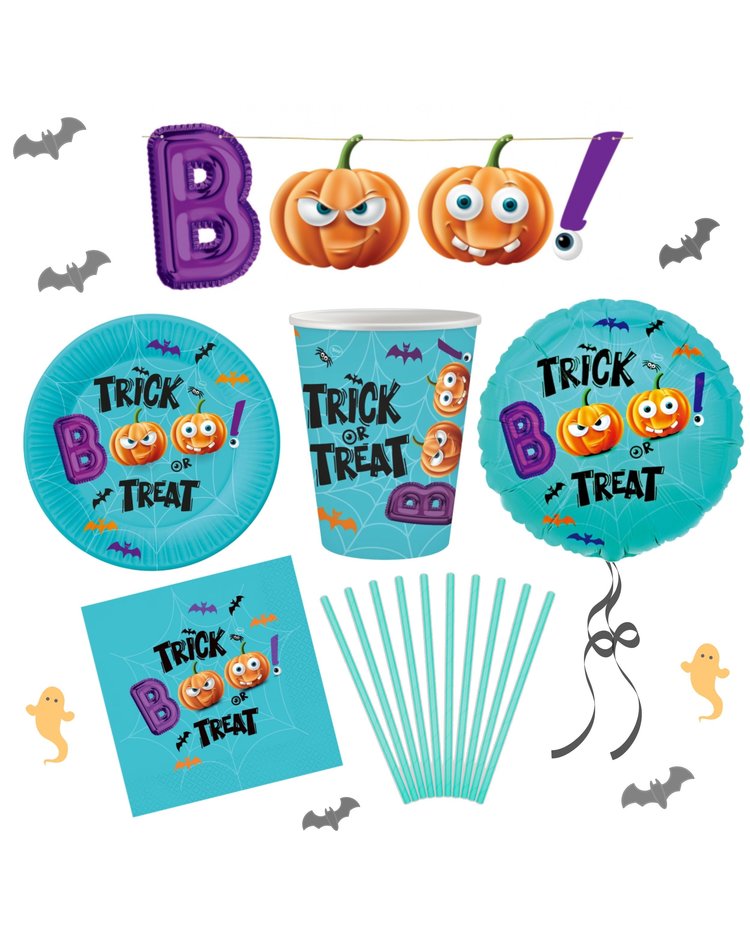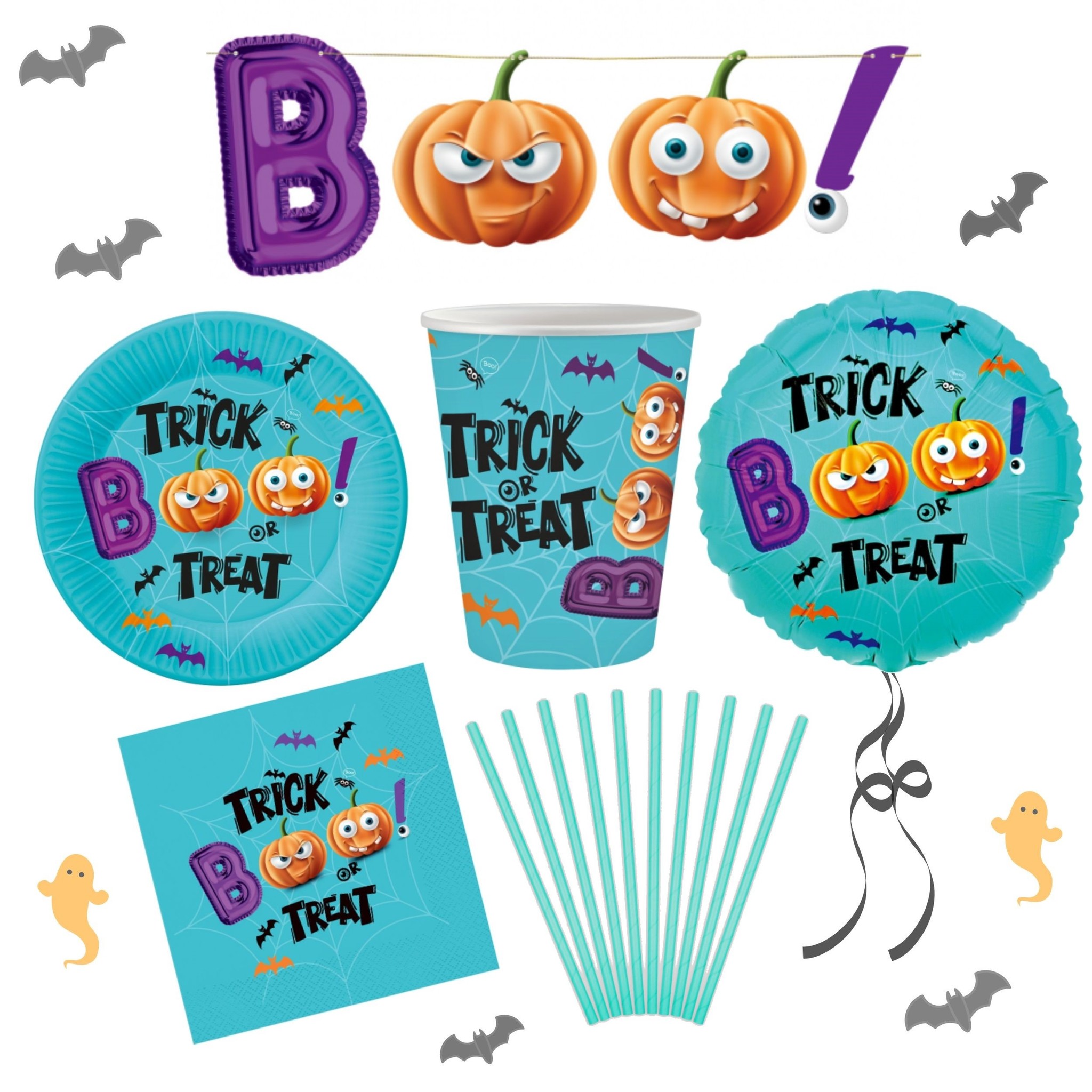 Mit diesem 44-teiligen Partyset "BOO! Trick or Treat" sind Sie bestens für Halloween gerüstet. Die einzelnen Teile lassen sich prima mit Artikeln aus unserem Shop ergänzen, wenn sie mehr Personen einladen möchten oder einige besondere Extras benötigen.