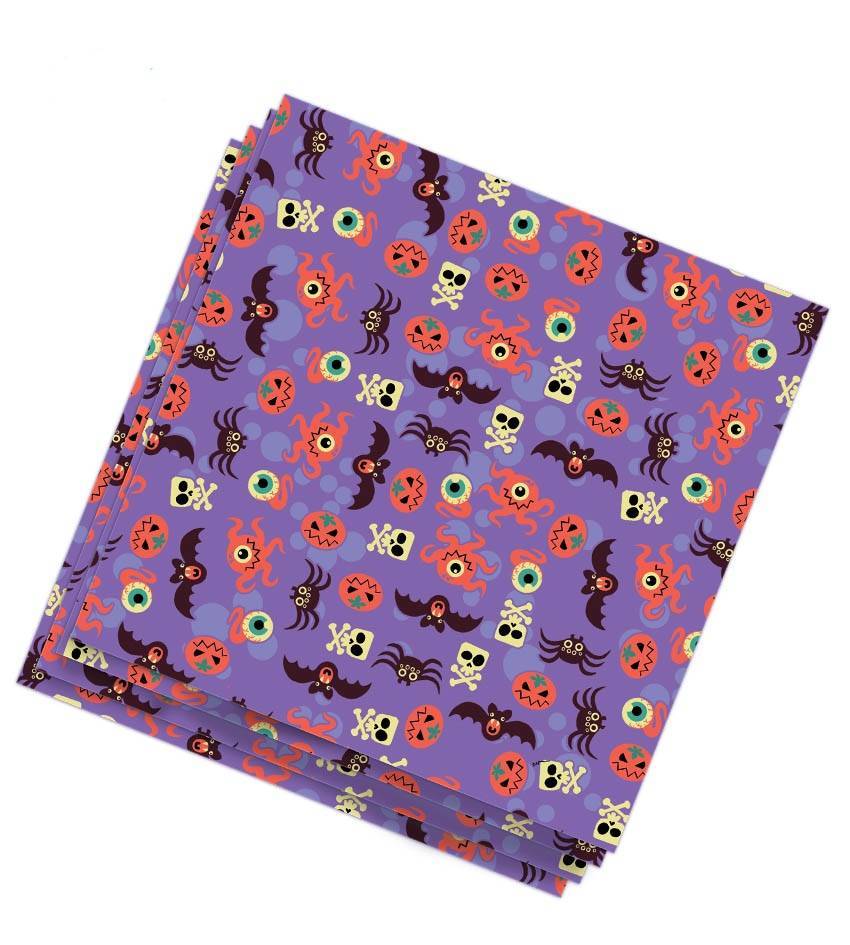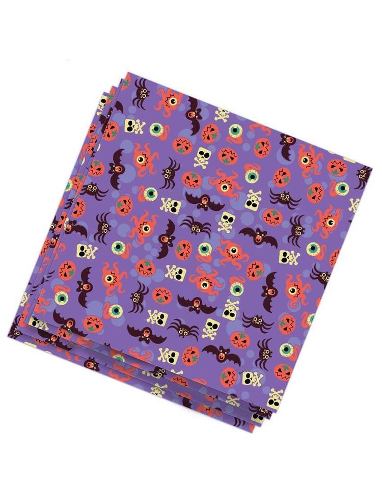Diese Servietten verleihen jeder Halloween-Party Farbe. Jedes Tuch ist knallig lila und mit einer Vielzahl gruselig-schöner Halloween-Motive bedruckt. Kürbisse, Totenköpfe, Fledermäuse und große Augen sorgen auf dem bunten Hintergrund für den perfekten Kontrast.