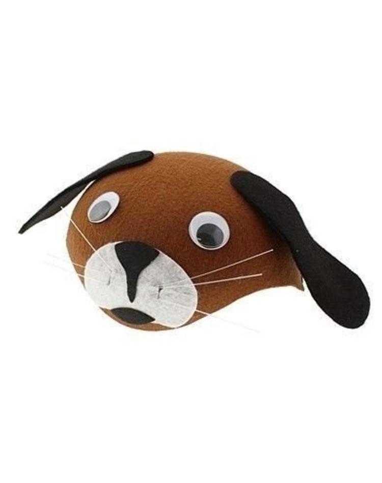 Die praktische braune Hundemütze mit schwarzen Ohren und einer weißen Schnauze ist eine tolle Ergänzung für Hundekostüme.