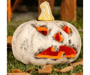 Dieser leuchtende 13 cm hohe Kürbis in Weiß ist eines unserer beliebtesten Halloween-Accessoires. Ob auf dem Tisch, der Fensterbank oder an einer sonstigen Stelle – überall verbreitet der gruselig-schöne Kürbis Halloween-Atmosphäre.