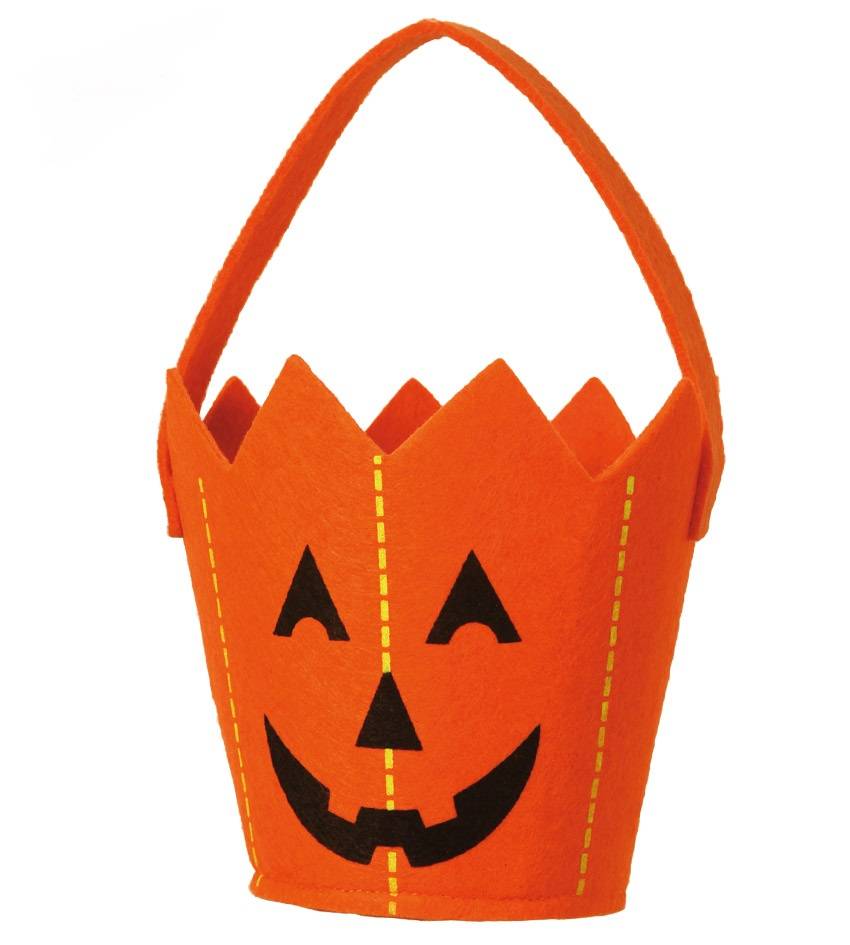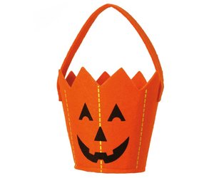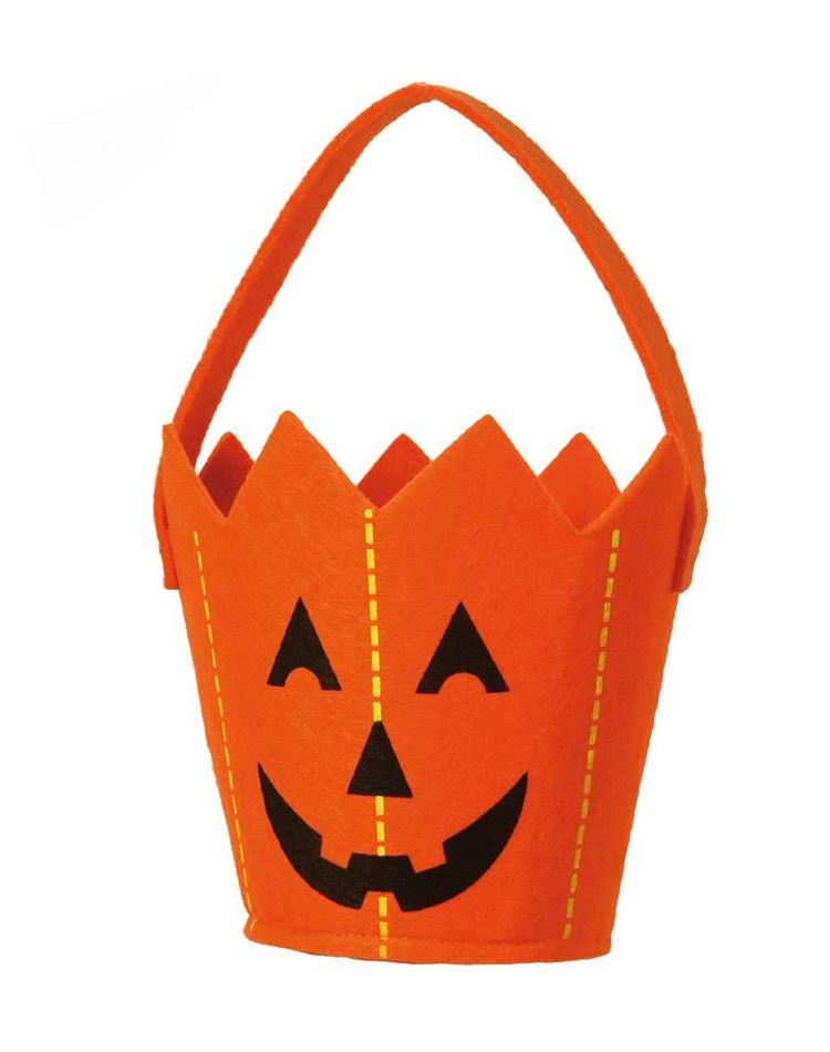 Das Kürbis Korb für Kinder besteht aus weichem Stoff in orangenen Farbe. Eine schicke Tasche passt perfekt zu Hexenkostümen und eignet sich für Hallween-Süßigkeiten.