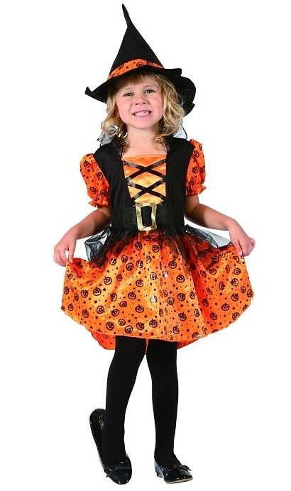 Das ist das perfekte Mädchenkostüm für Halloween - und mit nur einer Bestellung haben Sie alles, was Sie brauchen. Das Hexenkostüm für Kleinkinder in der Größe 92-104 besteht aus dem knallig-orangen Kleid mit etlichen schwarzen Mini-Kürbis-Gesichtern auf dem Rock- und Schulterteil sowie dem schwarzen Hexen-Hut, der passend zum Kleid ebenfalls mit einem orangen Band samt Kürbis-Köpfen geschmückt wird. Wirklich bemerkenswert sind die liebevollen Details des Kostüms: So wird das Orange des Kleids perfekt durch die schwarze Weste mit Goldschnalle und schwarzen Bändern in Szene gesetzt. Auch der durchsichtige Tüll im Hüftbereich ist ein echter Hingucker.