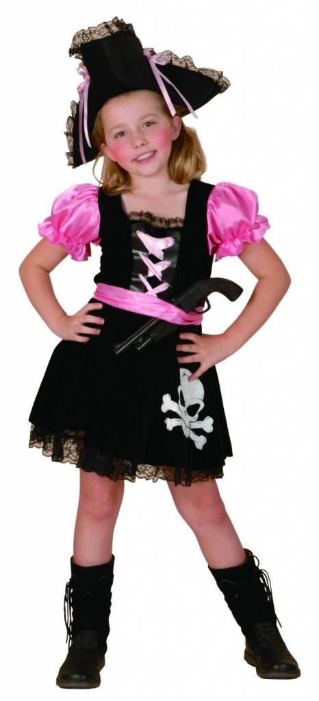 - Lieferumfang: Piratin Kostüm für Kinder Mädchen pink-schwarz-weiß umfasst ein schickes Kleid mit Gürtel und Piratenhut.