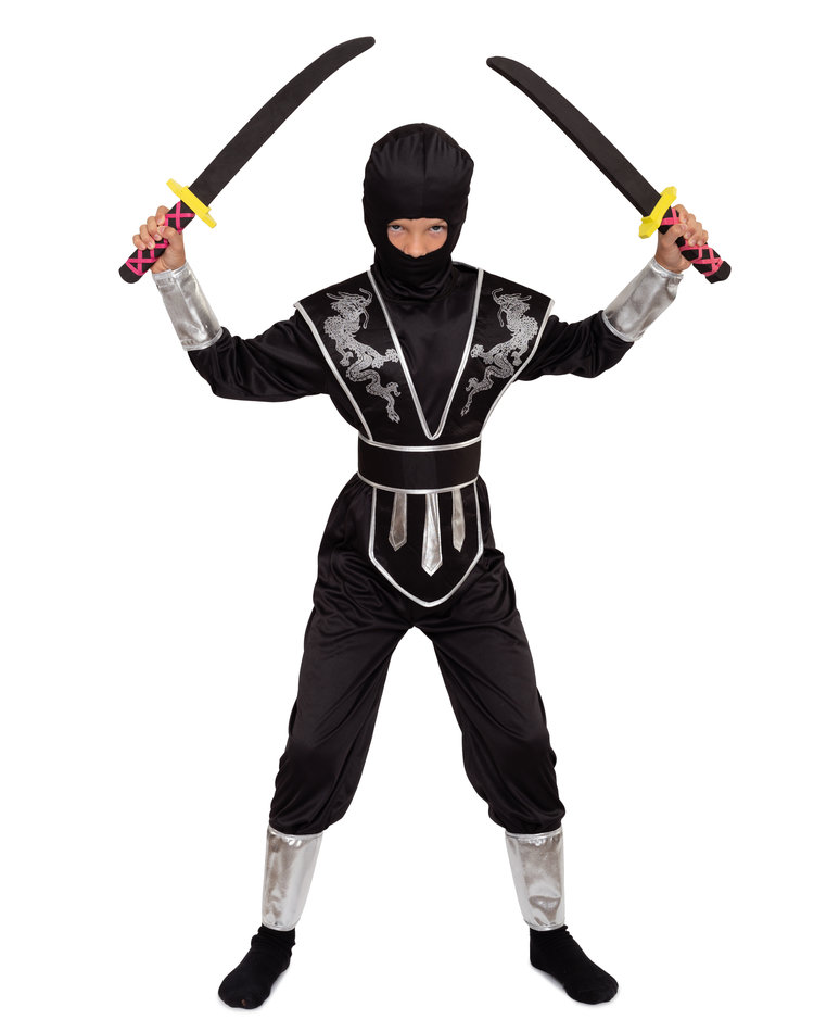 Magicoo Dragon Ninja Kostüm Kinder silber-schwarz