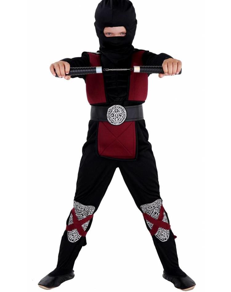 - Lieferumfang: Kostüm Ninja für Kinder rot burgundrot bestehend aus einem Overall (Hose und gepolsterte Bluse), Maske, Rüstung in rot-schwarz, Manschetten und Knieschoner. (ohne Schwert)