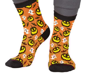 Diese fröhlich-gruseligen Socken in leuchtendem Orange sind ein Must-have für Halloween.