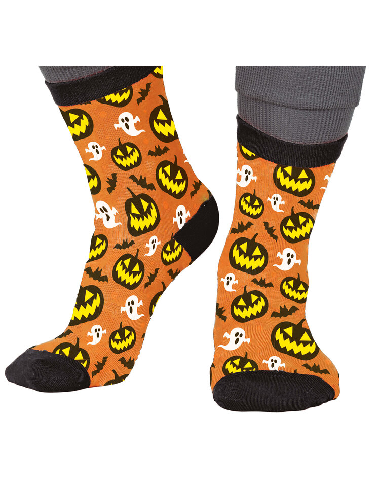 Fiestas Guirca Orangene Socken für Kinder mit Halloween-Muster
