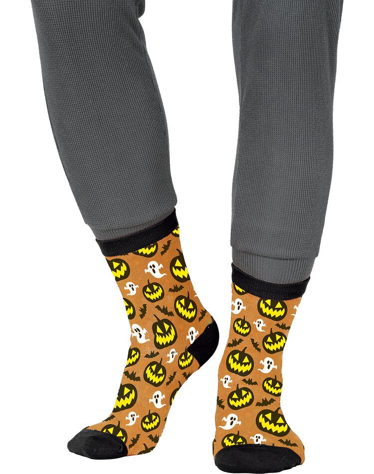 Sie sind mit lachenden, gelb-schwarzen Kürbissen, lustigen weißen Gespenstern und kleinen Fledermäusen bedruckt und bringen Farbe und Spaß in jedes Halloween Kostüm.