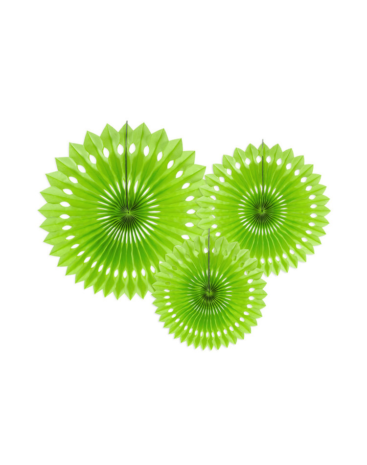 Dieses grün Papierfächer-Set mit drei verschiedenen Größen, besteht aus schönen Seidenpapier und lässt sich vielseitig zur Raumdekoration einsetzten. Vor allem in die Gestaltung von Fußball- oder Dino-Partys fügt es sich hervorragend ein! Die Papierfächer werden Ihnen gefaltet geliefert und können schnell und einfach mittels der beiliegenden Klebestreifen aufgefächert und in ihre Form gebracht werden.