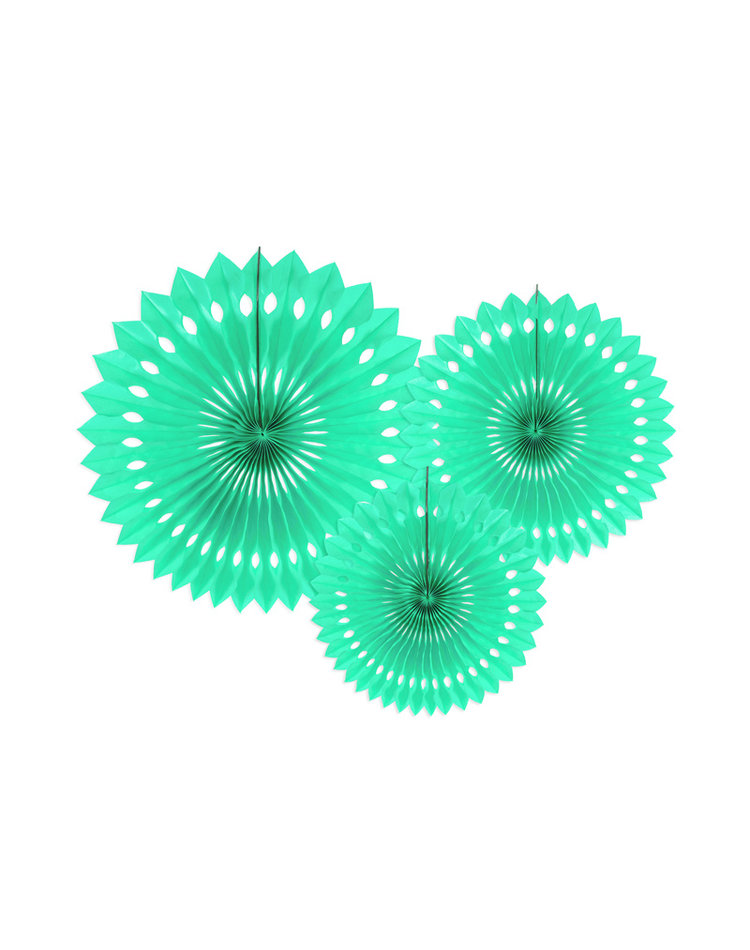 Dieses mint-grüne Papierfächer-Set mit drei verschiedenen Größen, besteht aus schönen Seidenpapier und lässt sich vielseitig zur Raumdekoration einsetzten. Vor allem in die Gestaltung von Meerjungfrauen-und Einhorn- oder Dinosauerier-Partys fügt es sich hervorragend ein! Die Papierfächer werden Ihnen gefaltet geliefert und können schnell und einfach mittels der beiliegenden Klebestreifen aufgefächert und in ihre Form gebracht werden.