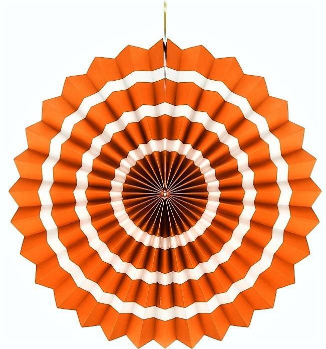 Inhalt: 1 Papierfächer orange-weiß, mit einem Durchmesser von 40 cm.