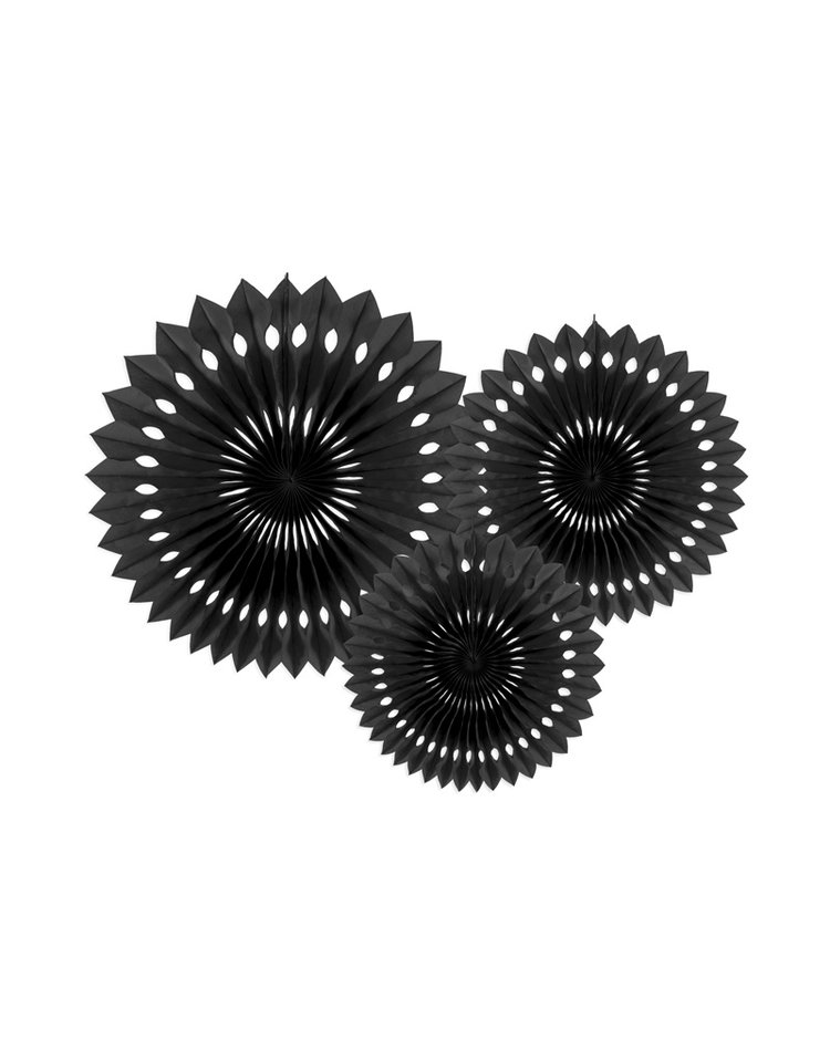 Dieses schwarze Papierfächer-Set mit drei verschiedenen Größen, besteht aus schönen Seidenpapier und lässt sich vielseitig zur Raumdekoration einsetzten. Vor allem in die Gestaltung von Halloween-, Piraten- oder Fußball-Partys fügt es sich hervorragend ein! Die Papierfächer werden Ihnen gefaltet geliefert und können schnell und einfach mittels der beiliegenden Klebestreifen aufgefächert und in ihre Form gebracht werden.
