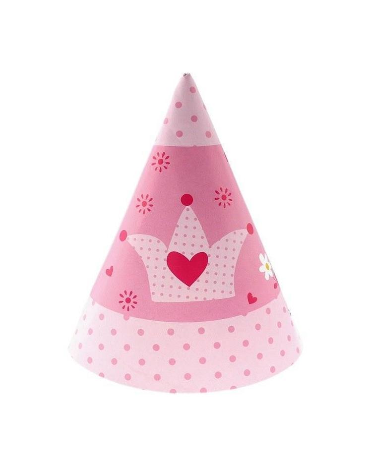 Wer braucht schon Krönchen, wenn er diese zauberhaften Partyhüte im Prinzessinnendesign haben kann? Das zarte Rosa verleiht ein elegantes Aussehen. Herzchen, Blumen und Punkte sorgen für ein fröhliches, kindgerechtes Design. Das Set besteht aus sechs Partyhüten – perfekt für die muntere Prinzessinnen-Runde!