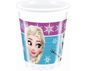 Acht Plastikbecher mit Frozen-Motiv, die Ihre Geburtstagsparty in ein wahres Disney-Fest verwandeln. Mit den Gesichtern von Elsa und Olaf bringen die Becher Ihre Disney-Helden direkt zu Ihnen nach Hause. Gemeinsam mit den passenden Tellern, Luftballons und einer Wimpelkette ist die Dekoration für die nächste Mottoparty perfekt!