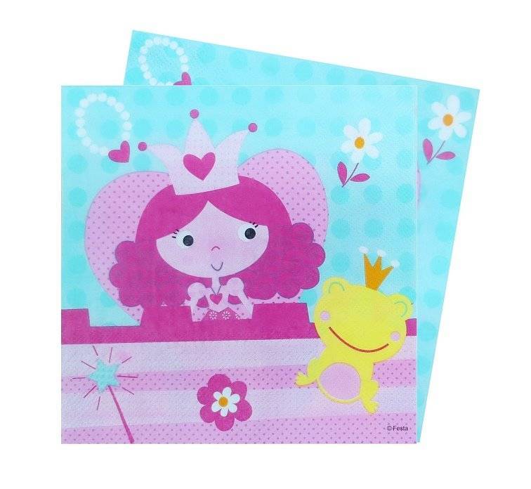Kleine Prinzessinnen und auch Prinzen wischen sich selbstverständlich die Finger ab. Damit dies besonders einfach ist, kommt diese süße Prinzessinnenserviette in einem Set bestehend aus 20 Servietten. Die kleine Prinzessin und ihr Freund der Frosch lächeln Ihnen von einem blauen Hintergrund aufmunternd zu.