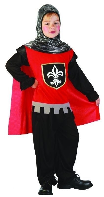Könnte man mal für einen Tag in die Vergangenheit reisen, die Ritterzeit wäre wohl das Ziel vieler kleiner (und großer) Jungen. Mit unserem Ritterkostüm für Kind wird dieser Wunsch zumindest teilweise wahr. Denn diese schöne Verkleidung in Schwarz und Rot macht die Ritterzeit wieder lebendig. Zum Lieferumfang dieses Ritterkostüms gehören ein rotes Hemd mit großem Wappen auf der Brust und schwarzen Ärmeln, ein roter Umhang, eine schwarze Hose und eine silberne Mütze im charakteristischen Metalketten-Look. Kurz: Mit einer Bestellung sind Sie alle Verkleidungssorgen auf einen Schlag los. Einfach nur zum Spielen, für Karneval oder Fasching, Kostümpartys oder Kindergeburtstage - unser Ritterkostüm für Kind wird überall der passende Begleiter sein. Dabei ist es auch noch bequem und wird deshalb ziemlich sicher für viel Spaß sorgen. Abschließend haben wir für Sie noch einen kleinen Tipp: Das passende Schwert zu diesem Kostüm finden Sie in unserem Zubehör-Bereich. Spätestens dann kann man die Pferde satteln...
