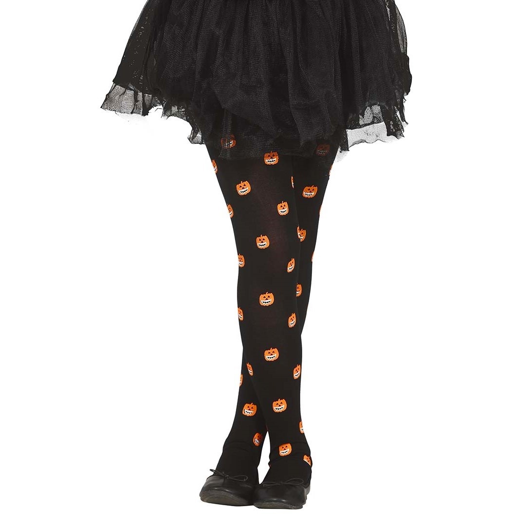 Fiestas Guirca Schwarze Strumpfhose für Kinder mit Kürbissen
