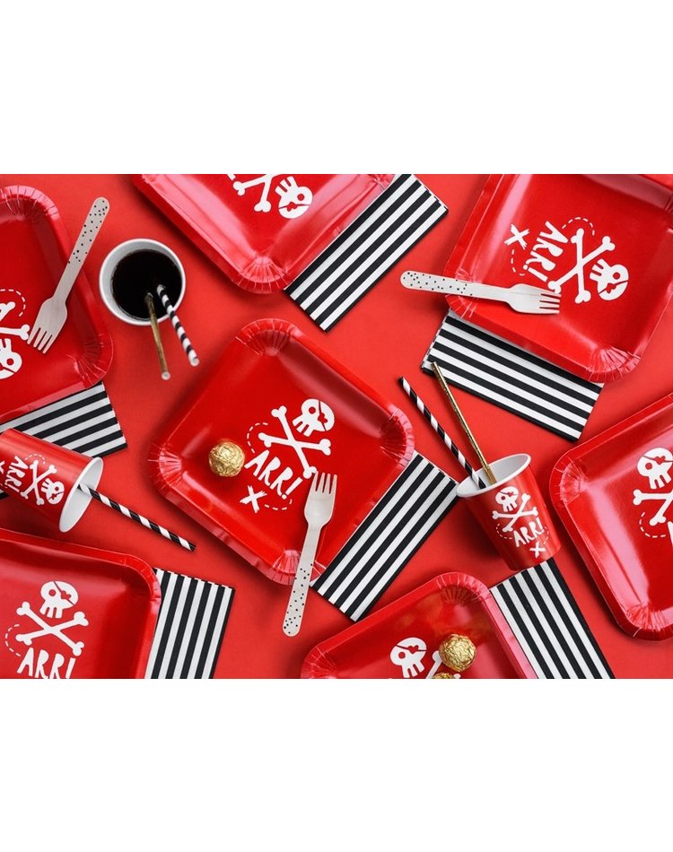Tipp: Um die verwegene und abenteuerliche Stimmung eines Piratenunterschlupfes nachzustellen, können Sie Produkte aus dieser Serie optimal mit Pompons, Wabenbällen und Papierfächern in Rot und Schwarz und goldenen Akzenten kombinieren. Zudem harmonieren sie hervorragend mit unseren Piraten Folienballons und Piratenhut- Geburtstagskerzen.