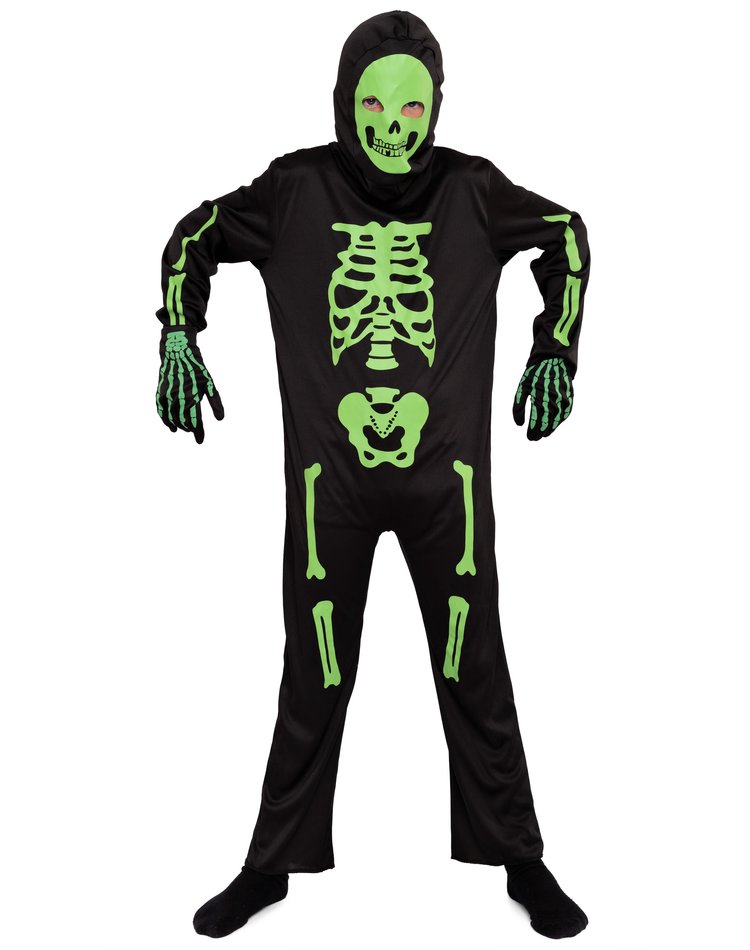 Magicoo Skelett Kostüm Kinder Jungen Grün inkl. Maske & Handschuhe