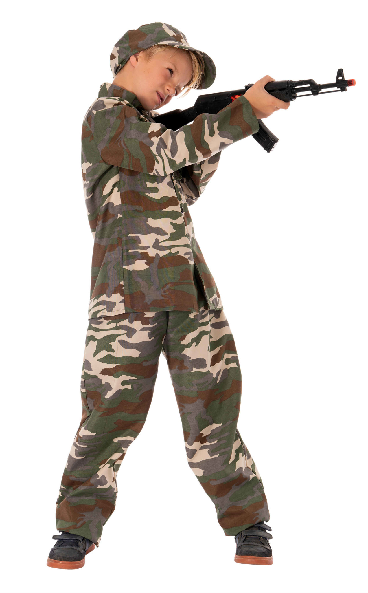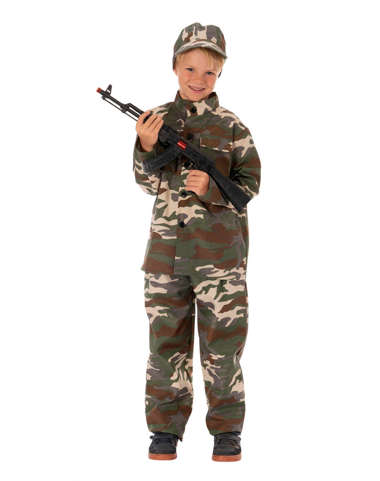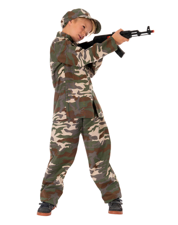 Zusammen mit einem Gewehr ist ihr Kind komplett ausgestattet für einen großen Auftritt. Dieses und weitere passende Accessoires, wie zum Beispiel Tarnschminke sind ebenfalls bei uns im Shop erhältlich.