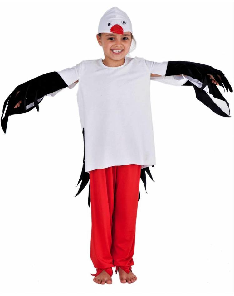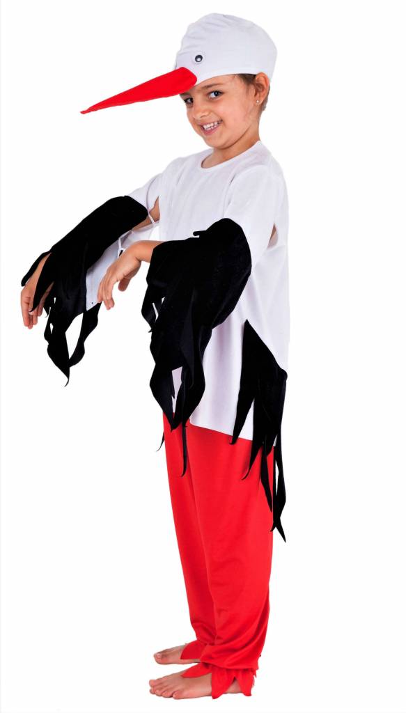 Lieferumfang: 1 Storchkostüm für Kinder - Vogelkostüm (inkl. Hose, Oberteil und Mütze)