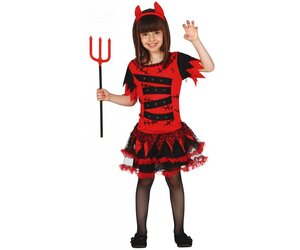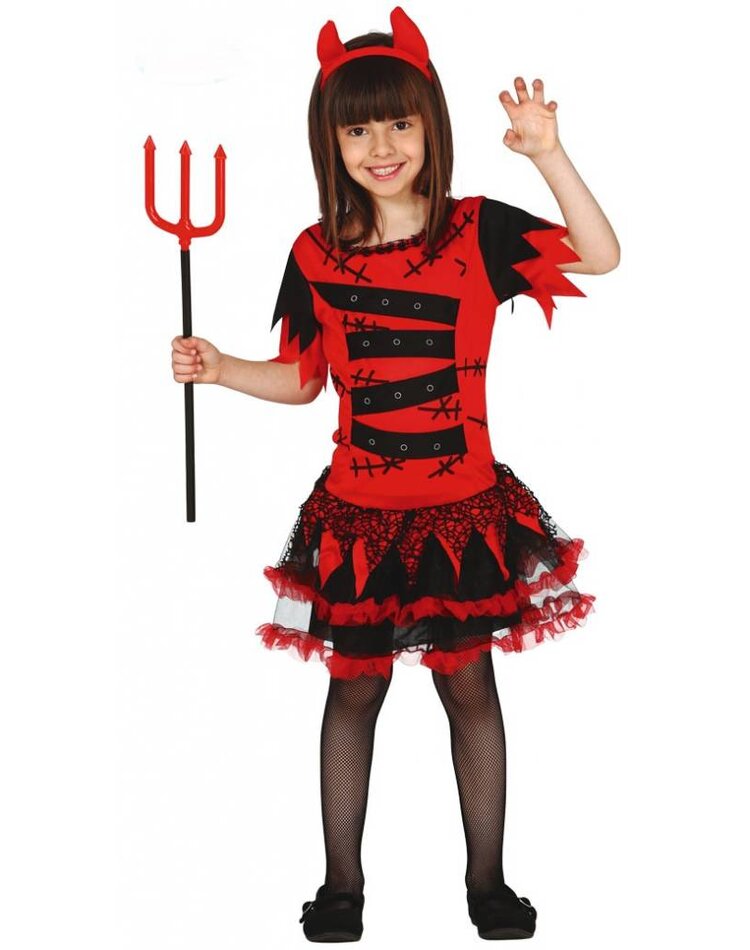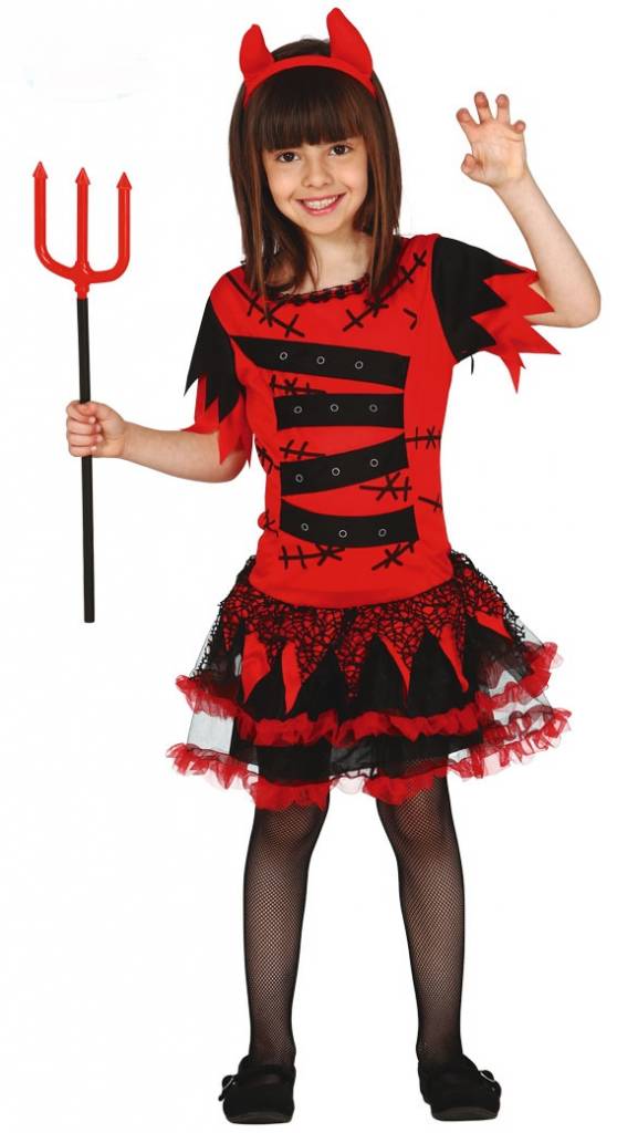 Teufelin Kostüme gibt es viele. Doch so wie dieses Teufel Kostüm für Mädchen hier sieht wohl kein anderes aus. Dieses schaurig-süße Komplettoutfit ist ein absoluter Hingucker. Dazu gehören das Kleid mit dem schwarz-rot verzierten Tüll-Rock und dem mit schwarzen Flicken und Narben-Bemalungen verzierten Oberteil, welches mit dem Rock zusammenhängt. Komplettiert wird dieses Teufel Kostüm für Mädchen durch die kleinen Teufelshörnchen, die an einem Haarreifen befestigt sind und das Gesamtbild ideal abrunden. Wir empfehlen eine schwarze Strumpfhose und schwarze Schuhe dazu (siehe Foto). Spätestens dann ist das Teuflin-Kostüm für Mädchen eigentlich unschlagbar...