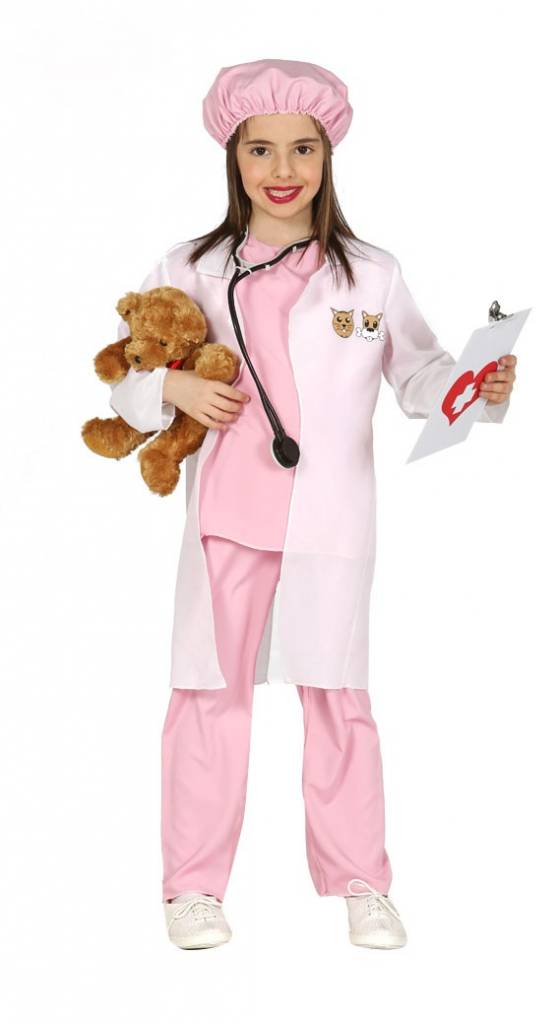 Es ist der Traumberuf vieler Kinder: Tierarzt oder Tierärztin! Wir haben jetzt das passende Kostüm für jeden, dessen größter Traum es ist, kranken und verletzten Tieren zu helfen. Das Outfit besteht aus einer rosa Hose, einem rosa Oberteil und einer ebenfalls rosa Kopfbedeckung. Dazu gehört natürlich noch der weiße Arztkittel, auf dessen linker Brustseite ein Hund und eine Katze aufgedruckt sind. Jetzt noch ein Stethoskop zum Abhören und ein "krankes" Kuscheltier (wie auf unserer Produkt-Abbildung) und schon kann die Praxis öffnen…