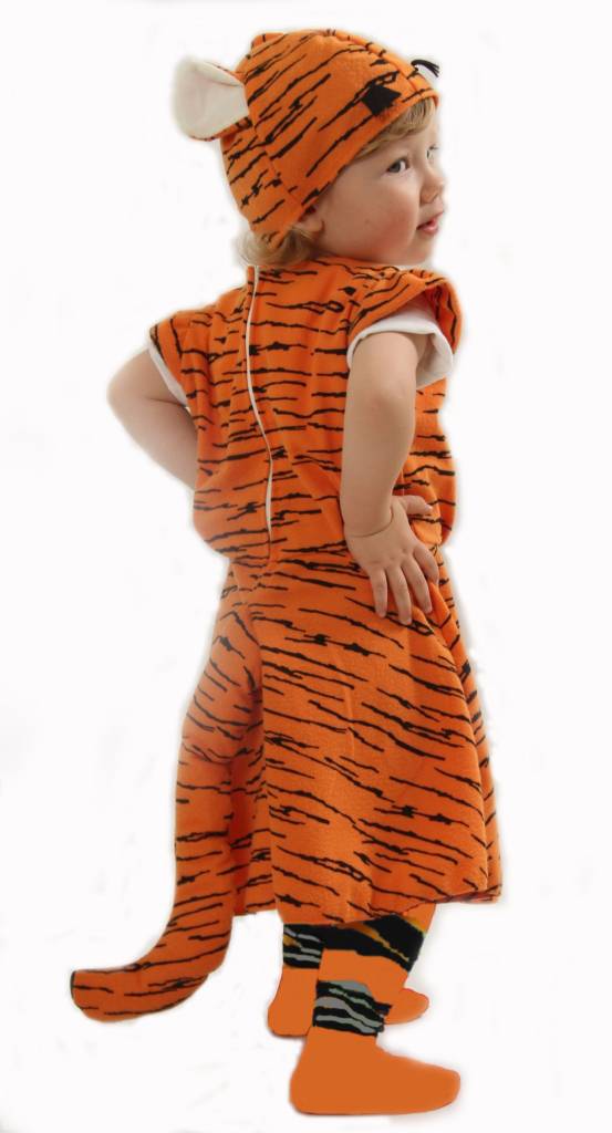 Wenn man in der freien Wildbahn einem Tiger begegnet, sollte man schnell das Weite suchen. In diesem Fall wird es aber sicher anders ablaufen. Unser Tiger Kostüm für Mädchen wird die Leute anlocken und begeistern. Zu süß sehen die kleinen Mädels einfach aus, wenn sie dieses tolle Kostüm anhaben. Zum Gesamtpaket gehören ein Tiger-Kleid mit Tiger-Handschuhen (siehe zweites Bild) und eine Kopfbedeckung mit den niedlichen Tiger-Ohren. Abgerundet wird das ganze Bild durch den Tigerschwanz auf der Rückseite. Der kuschelweiche Stoff im Tigerprint macht jedes Mädchen zu einem süßen Tigerbaby. Ein praktisches, bequemes und robustes Kostüm, das bei allen Beteiligten für viel Freude sorgen wird. Dieses Tiger Kostüm für Mädchen ist sicher nicht zum Weglaufen...