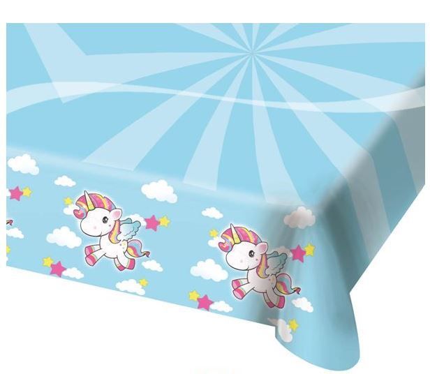 Diese Einhorntischdecke bringt die Magie auf Ihre Kaffeetafel! Mit hellblauem Grund und süßen, kleinen Einhörnern mit Regenbogenmähne ist die Tischdecke nicht nur ein toller Schutz für die Tischdecke, sondern auch klasse Dekoration für Ihre Party. Passend dazu erhalten Sie Servietten im gleichen Design, die Ihre Einhorn-Party gelungen abrunden. Die Größe der Tischdecke beträgt 180x130cm, sodass die Tischdecke mit Einhornmotiv auch für große Kaffeetafeln geeignet ist.
