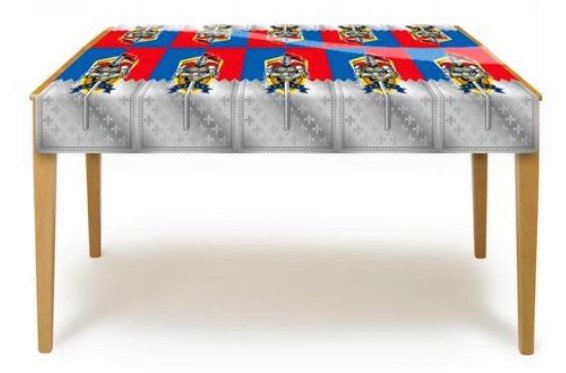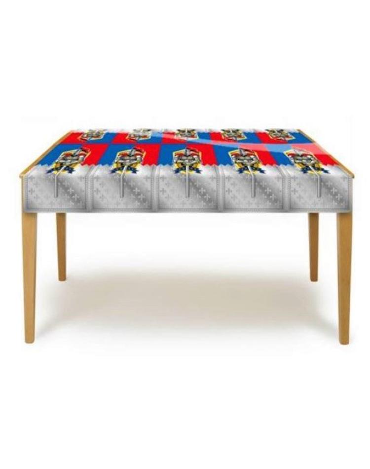 Jede Rittertafel braucht auch eine entsprechende Tischdecke. Diese hier ist eine ganz besonders elegante Lösung. Die 130 x 180 cm große Tischdecke ist am Rand weiß und ist mit silbernen Kreuzen verziert. Die Mitte der Tischdecke ist mit einem blau-roten Muster versehen, das von zehn Emblemen mit der Statur eines stolzen Ritters versehen ist. Eine gute Unterlage für jedes Rittermahl. Wichtiger Hinweis: Zu diesem Artikel passende Produkte finden Sie in unserem Shop!