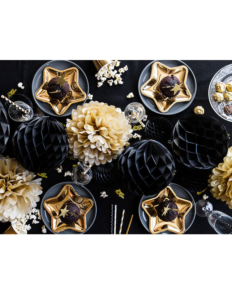 Modern & geschmackvoll – Erschaffen Sie einfach und schnell ein schönes Ambiente für Ihre nächste Party. Die schwarzen Wabenbälle fügen sich ausgezeichnet in Fußball-, Halloween-, Geburtstags- und Gartenpartys ein. Enthalten ist ein Wabenball mit einem Durchmesser von 20 cm. In Sekundenschnelle können Sie diesen einfach auffächern und mittels der angebrachten Klebepunkte befestigen.