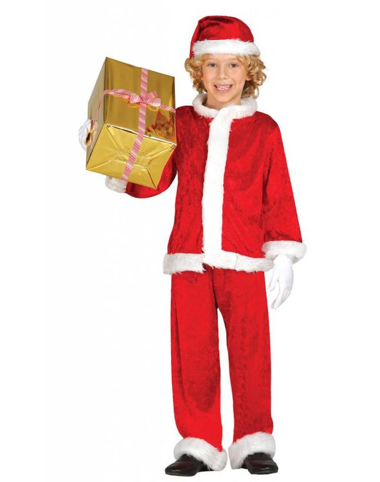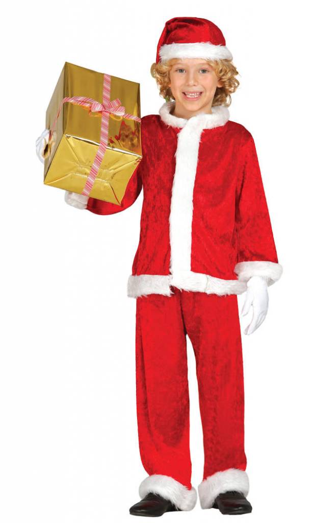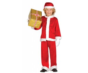Zu diesem Kinder Weihnachtskostüm gehören die samtig rote Hose mit Fellverzierung an den Knöcheln und die passende Jacke sowie die Weihnachtsmann-Mütze im bekannten Aufzug. Jetzt noch ein Geschenk als Accessoire dazu (siehe Foto) und schon kann Weihnachten wieder kommen...